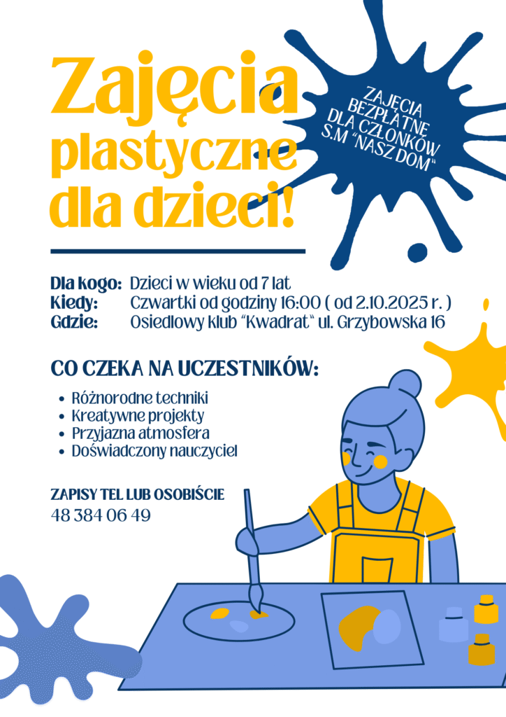 Zapraszamy dzieci – członków S.M. „Nasz Dom” – na twórcze i pełne kolorów zajęcia plastyczne!